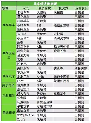创始人缺乏融资能力,这使得悟空单车和一元体育成为了共享经济的第一波牺牲者。而从6月开始,一场浩浩荡荡的共享经济死亡潮也正式拉开了帷幕。
