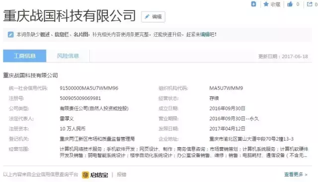 悟空单车所属的重庆战国科技有限公司,按照工商相关信息显示,企业是于2016年9月30日注册的,到今天为止,还不到9个月。这场共享单车的风口,起得够快够猛,灭得特够猛够快。